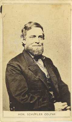 A carte-de-visite card of Schuyler Colfax, 1823-1885, an American businessman and politician. Colfax was the 17th vice president of the United States.
