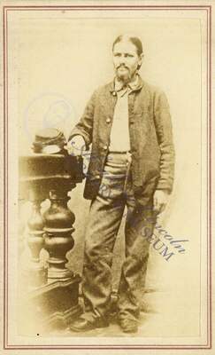 A carte-de-visite card of Thomas "Boston" Corbett, 1832-1894, an English-born, American soldier. Corbett is most notable for shooting Abraham Lincoln's assassin, John Wilkes Booth.
