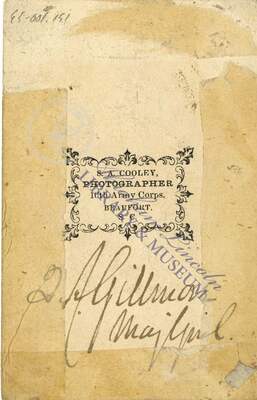 The contents of the Abraham Lincoln Library and Museum's Carte-de-Visite Collection are in public domain. Online access is meant for research and educational purposes. Preferred Citation: “Gillmore, Quincy Adams 2 Back”, Carte de Visite Collection. Abraham Lincoln Library and Museum, Lincoln Memorial University, Harrogate, TN.