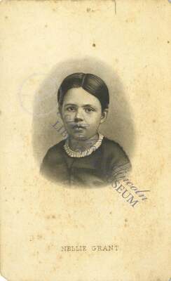 A carte-de-visite card of Nellie Grant, 1855-1922, daughter of U.S. President Ulysses S. Grant and First Lady Julia Grant.