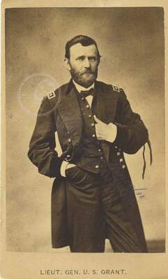 A carte-de-visite card of Ulysses S. Grant, 1822-1885, 18th U.S. President and Union general during the American Civil War.