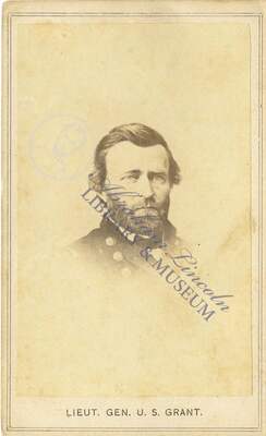 The contents of the Abraham Lincoln Library and Museum's Carte-de-Visite Collection are in public domain. Online access is meant for research and educational purposes. Preferred Citation: “Grant, Ulysses Simpson 12”, Carte de Visite Collection. Abraham Lincoln Library and Museum, Lincoln Memorial University, Harrogate, TN.