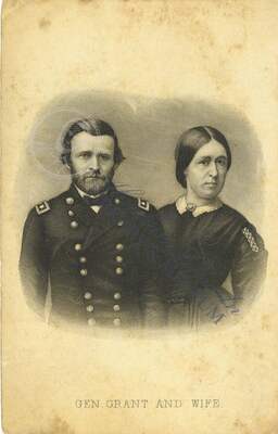 The contents of the Abraham Lincoln Library and Museum's Carte-de-Visite Collection are in public domain. Online access is meant for research and educational purposes. Preferred Citation: “"Gen. Grant and wife"”, Carte de Visite Collection. Abraham Lincoln Library and Museum, Lincoln Memorial University, Harrogate, TN.