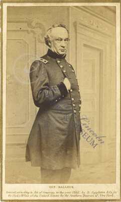 The contents of the Abraham Lincoln Library and Museum's Carte-de-Visite Collection are in public domain. Online access is meant for research and educational purposes. Preferred Citation: “Halleck, Henry W .”, Carte de Visite Collection. Abraham Lincoln Library and Museum, Lincoln Memorial University, Harrogate, TN.