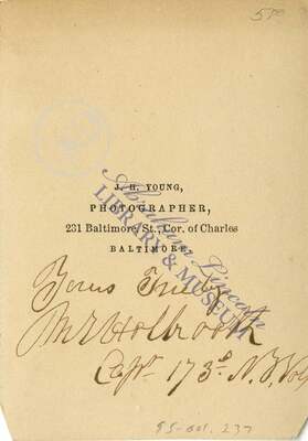 The contents of the Abraham Lincoln Library and Museum's Carte-de-Visite Collection are in public domain. Online access is meant for research and educational purposes. Preferred Citation: “Holbrook, Mellen Taft Back”, Carte de Visite Collection. Abraham Lincoln Library and Museum, Lincoln Memorial University, Harrogate, TN.