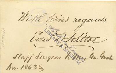 The back of a carte-de-visite card of Edward Kittoe, a surgeon for the Union during the American Civil War.