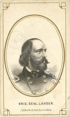 A carte-de-visite card of Frederick W. Lander, 1821-1862, a United States explorer and general in the Union Army during the American Civil War.