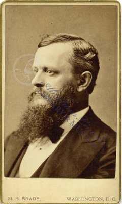 A carte-de-visite card of John C. New, 1831-1906, a United States banker and lawyer.
