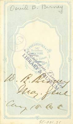 The back of a carte-de-visite card of David Bell Birney, an American lawyer and Union general in the American Civil War.