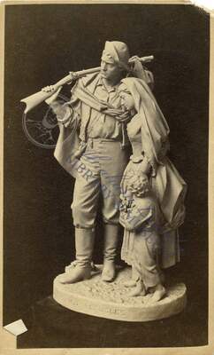 A carte-de-visite card of the sculpture, "Union Refugees", by John Rogers.