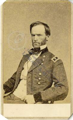 A carte-de-visite card of William Tecumseh Sherman, 1820-1891, a general in the Union Army during the American Civil War.