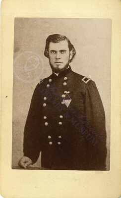 A carte-de-visite card of Isaac R. Sherwood, 1835-1925, an American politician, newspaper editor, and an officer for the Union army during the American Civil War.