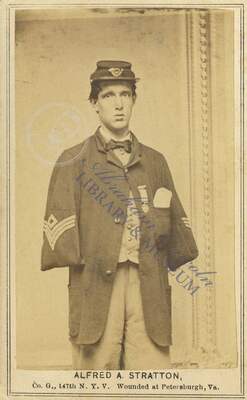 The contents of the Abraham Lincoln Library and Museum's Carte-de-Visite Collection are in public domain. Online access is meant for research and educational purposes. Preferred Citation: “Stratton, Alfred A. (Co. G, 147th N. Y. V.)”, Carte de Visite Collection. Abraham Lincoln Library and Museum, Lincoln Memorial University, Harrogate, TN.