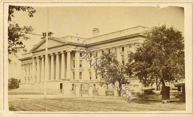 A carte-de-visite card of the U.S. treasury department building.
