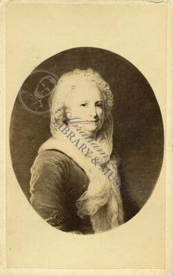 A carte-de-visite card of Martha Washington, 1731-1802, wife of George Washington and the first first lady of the United States.