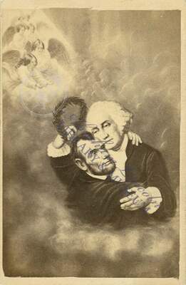 A carte-de-visite card of Washington and Lincoln (Apotheosis) with Angels