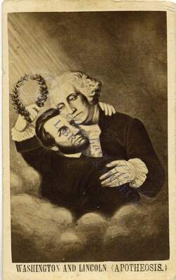 A carte-de-visite card of Washington and Lincoln (Apotheosis) without Angels.