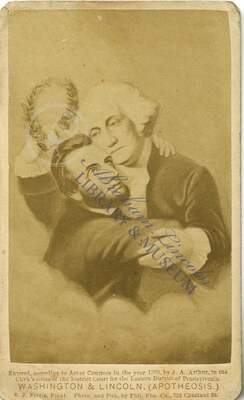 The contents of the Abraham Lincoln Library and Museum's Carte-de-Visite Collection are in public domain. Online access is meant for research and educational purposes. Preferred Citation: “Washington and Lincoln (Apotheosis) without Angels 4”, Carte de Visite Collection. Abraham Lincoln Library and Museum, Lincoln Memorial University, Harrogate, TN.