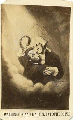 A carte-de-visite card of Washington and Lincoln (Apotheosis) without Angels.
