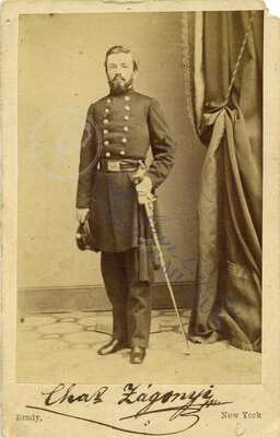 A carte-de-visite card of Charles Zagonyi, a Union officer during the American Civil War.