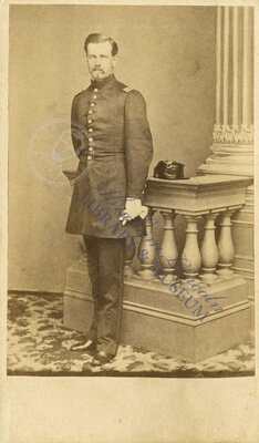 A carte-de-visite card of a captain in the Union army during the American Civil War. The captain has been labelled as Captain Slocum and Shim but neither name could be verified.