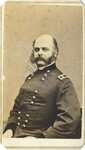 A carte-de-visite card of Ambrose Everett Burnside, 1824-1881. Burnside was a major general for the Union during the American Civil War and a politician after the war.
