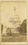 A carte-de-visite card of the United States Capitol, or the Capitol Building. Construction started in 1793 and was completed in 1826.